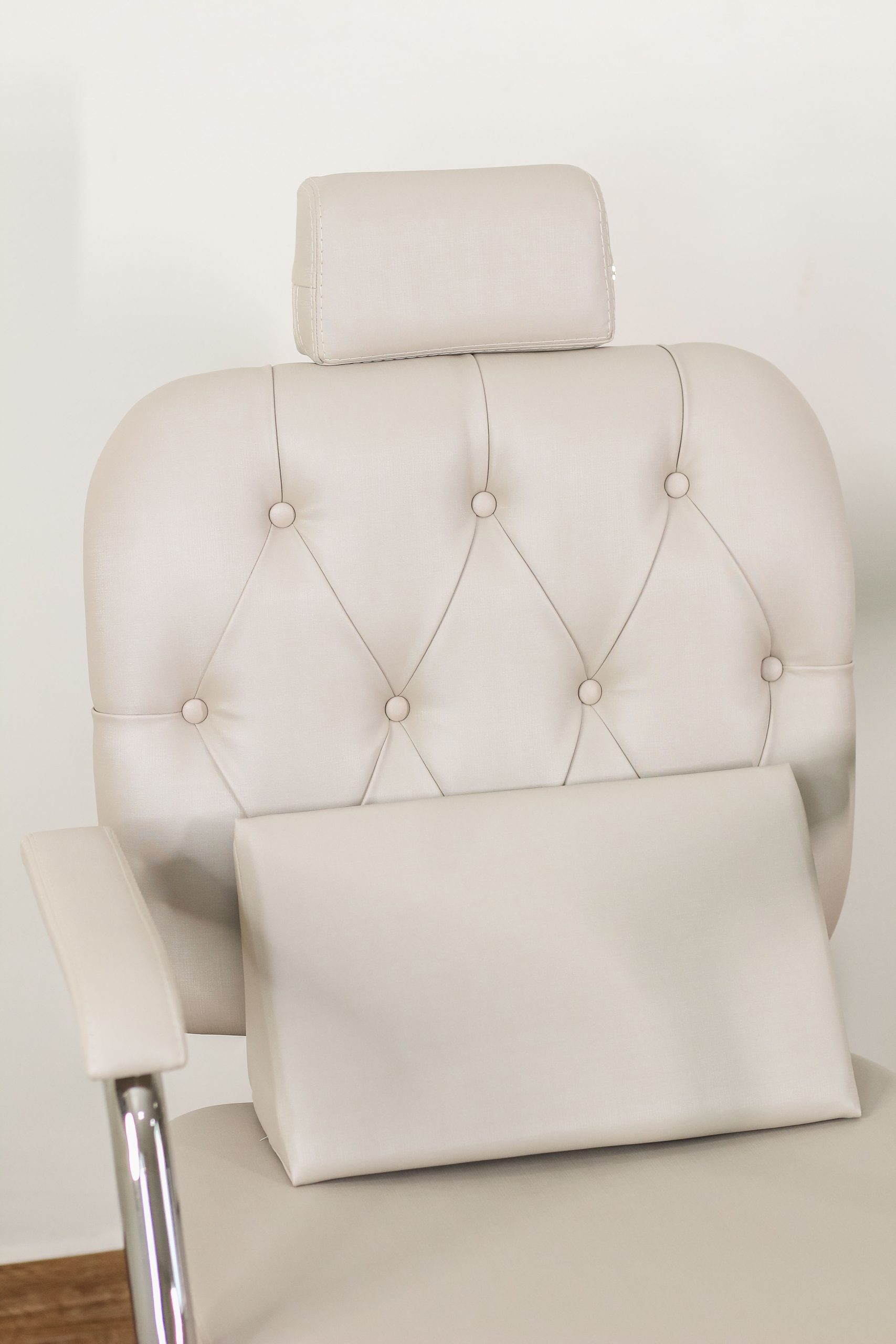 Por fim, o suporte lombar complementa o conjunto, proporcionando suporte e alívio para as costas dos cliente em atendimento. Com sua estrutura anatômica e ajustável, ele se adapta à curvatura da coluna vertebral, aliviando a pressão nas costas e evitando possíveis dores e lesões.