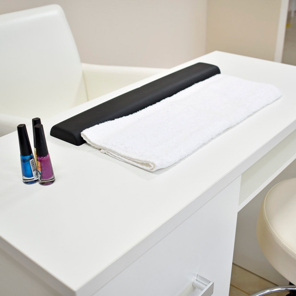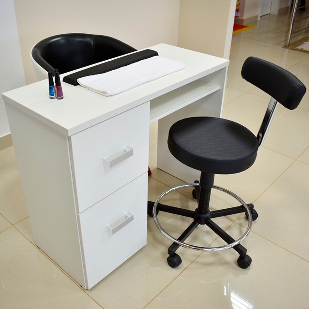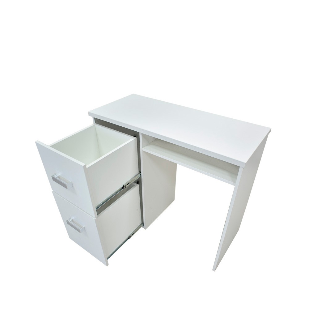 Mesa para manicure especializada em unhas em gel, com espaço especial para a secadora de unhas, duas gavetas de abertura total por trilho telescópico.